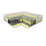 - این تشک از فنربافت هلیکل با قطر ۱.۴ میلیمتر و فولاد فول کربن کششی ۷۲.B بهره میبرد. همچنین دارای فریم فلزی با قطر ۴ میلیمتر و اسکلت فنر متصل بونل با قطر ۲.۲ میلیمتر فولاد فول کربن کششی ۷۲.B در هسته مرکزی است. برای استحکام بیشتر کنارهها، سه فنر تقویت شده M شکل قطر ۴ میلیمتر در هر طرف به کار رفته است.
